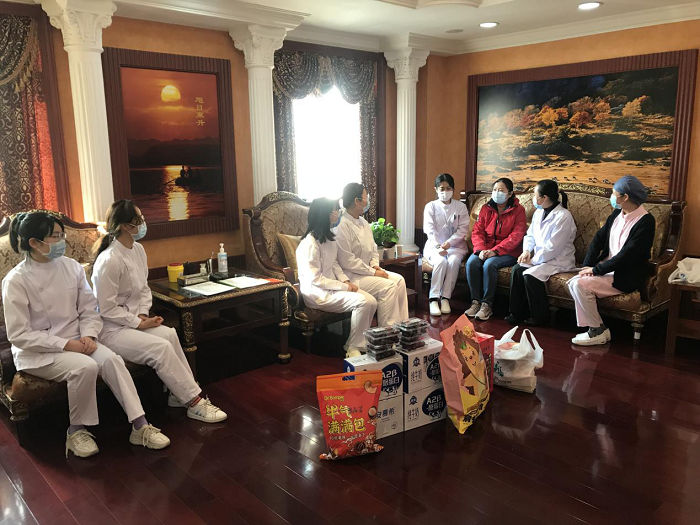 为响应就地过年倡议,色情网站 有31名研究生、本科生留在北京、深圳、合肥实习点和学校过年。学院认真落实教育部和大学节日期间总体部署,扎实安排好春节期间留院学生疫情防控和生活服务保障工作。院领导及辅导员到各临床科室走访慰问留院实习同学,为每一位留校学生送上学院准备的新春礼物,为坚守岗位的实习生加油鼓劲,送去新春慰问和节日温暖。