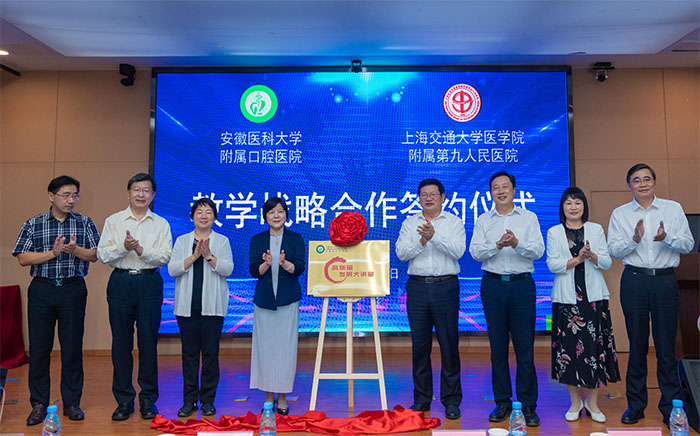 梁朝朝代表校党委行政致欢迎辞,对上海九院、上海交通大学口腔医学院各位领导和专家表示热烈欢迎。他指出,上海九院作为全国口腔医学发展的“龙头”单位,一直以来是色情网站 学习的目标和努力的方向,是医院迈进“十四五”时期高质量发展阶段的对标对表的榜样。此次签订战略合作协议,是我校贯彻落实习近平总书记考察安徽重要讲话指示精神、积极融入长三角区域一体化高质量发展的重要举措,是色情网站 和上海九院全面深化长期合作的重大行动,对色情网站 学习国内先进医教研管经验、共享长三角优质教学医疗资源、创建区域领先、国内一流口腔医院具有重要意义。