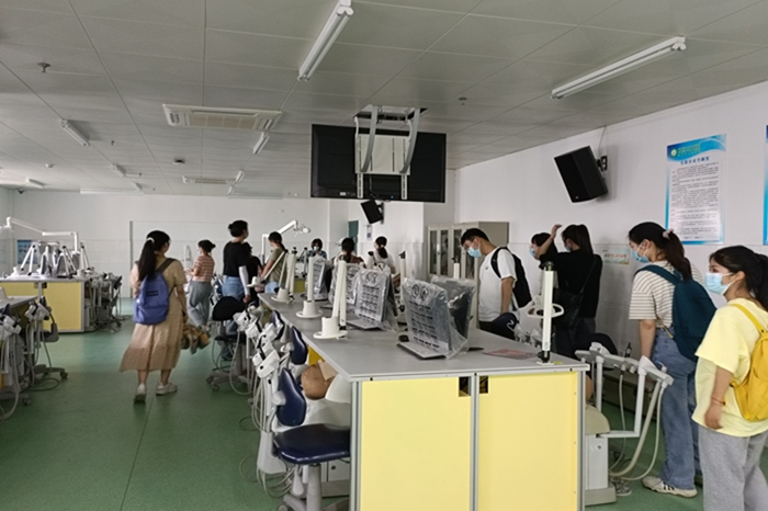 研究生会成员带领22级专硕新生参观了校园,向大家详细介绍各教学楼、实验楼的位置,学校各类生活资源的使用方法、出行方式等校园生活必备知识,同时带领新生参观口腔教学实验室,参观学习实验室设备及历届优秀学员的优秀作品。最后,新生在迎新工作老师的指导下有序完成了入学体检,至此22级专硕研究生迎新活动落下帷幕。