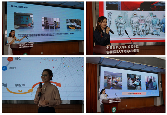 护理论坛,共谋职业发展。4月底,该院举办了以“启迪,聚力,发展”为主题的首届护理职业发展论坛。来自10个科室的14位参赛选手通过PPT,从护理服务质量改善、患者安全及护理安全管理、创新团队建设、护理科研、临床护理案例分享等展开汇报。比赛紧张有序,参赛选手们的职业发展规划设计结构完整、逻辑缜密、条理清晰、重点突出,职业生涯目标制定贴切合理,演讲过程富有感染力。论坛启迪护士开拓眼界,梳理思路,规划未来,同时以点带面、以面带全,进一步树立了口腔护士职业责任感、荣誉感和使命感。经过激烈角逐,来自牙体牙髓儿童牙科张函等7人分别荣获一、二、三等奖。