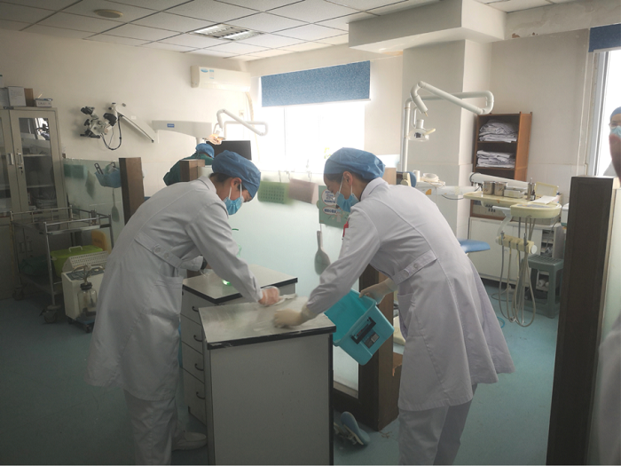为进一步改善护士工作区域的组织管理和工作环境,以高效的方式为病人提供优质服务,同时提升护理管理质量。 近日,牙周黏膜科护士们对科室的各诊室、库房及更衣室内环境进行全面的大清扫。