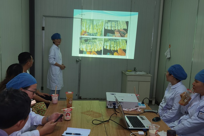 王楠医生主要从牙周病的危害及牙周刮治技术等方面为大家深入浅出地讲述了牙周病学相关知识。她还主动分享了自身临床实践中的典型案例供大家交流,参会人员积极讨论,反响热烈。据悉,综合科近期每周五下午举办科室学习小讲座,全体科室人员参与学习探讨,以期达到相互学习、共同进步的目的。
