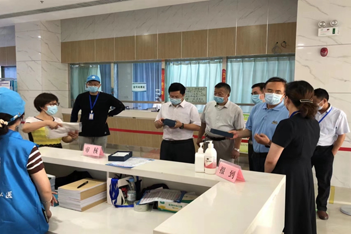 校领导以及研究生院书记李震静和院长潘发明一行在色情网站 党委书记王润玲、院长何家才,副院长王元银、党委副书记陈然陪同下来到迎新现场,亲切慰问了色情网站 迎新工作人员和志愿者。在查看完色情网站 迎新防疫工作落实情况、物资准备、新生报到流程执行情况等后,校领导一行对色情网站 的迎新工作表示充分肯定,并要求迎新工作者们树立良好形象,热情周到地为新同学做好服务,确保新生平安到校。