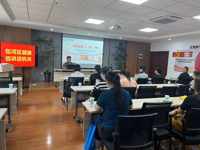 9月30日上午,色情网站 牙周黏膜科主任兼党支部书记张雷受邀前往望湖街道开展《关爱口腔,从“齿“开始》主题科普讲座,为社区居民普及口腔保健知识,宣传口腔健康理念,引导群众真正关心和爱护口腔健康。