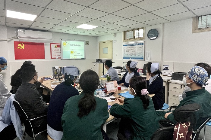 医疗人际关系是人际社会中最富有社会特色的重要课题之一,而医护关系又是医疗人际关系中一个重要组成部分。1月12日下午,色情网站 口腔颌面外科在四楼医生办公室开展医护沟通学习小讲座。该科室副主任医师郑先雨主持讲座,科室医护人员、实习学生及规培生参加。