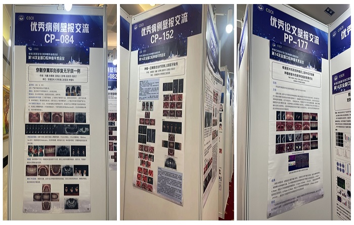 本次大会开设主题学术演讲、科普创作交流、优秀论文和优秀病例交流等模块。在优秀病例交流环节中,色情网站 龙鲜艳同学以《Er:YAG激光辅助清创治疗右下颌前牙种植术后感染一例》为题进行了现场汇报,她立足学术理论、结合临床实际,以严密的逻辑思维和精彩的发言赢得了现场阵阵掌声。种植科刘鑫副教授及其团队相关病例《穿颧穿翼即科修复无牙颌一例》《根盾技术和即刻种植在上颌中切牙连续种植修复中的美学和临床效果对比》《种植—正畸联合治疗双侧上颌前牙缺失》也进行了壁报展示,为全国口腔行业同仁奉献了一场精彩的学术盛宴。