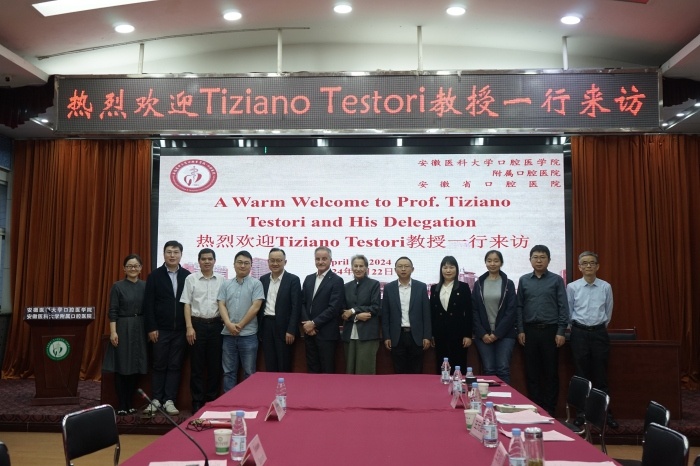 4月22日下午,意大利米兰大学牙科学院Tiziano Testori教授来院进行学术交流与访问。校人事处处长高跃峰,国际合作交流处处长黄晓晖,教务处副处长方皓舒,科技产业处副处长李洋,色情网站 党委书记王润玲、副院长王元银,党委副书记陈然、副院长曹颖、学术副院长徐骏疾、相关科室负责人等参加交流。