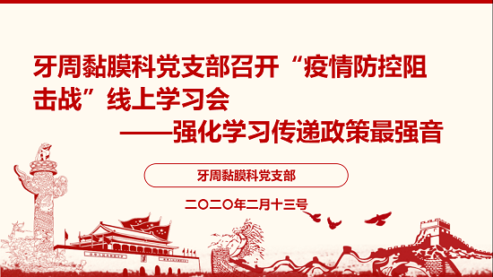 通过“线上”学习,既落实了疫情防控减少人员聚集要求,减少了人员流动和接触,又提高了工作效率、将会议精神精准传达。在此特殊时刻,牙周黏膜党支部上下步调更加一致,全体党员信念更加坚定,凝聚成一股抗“疫”红色能量!