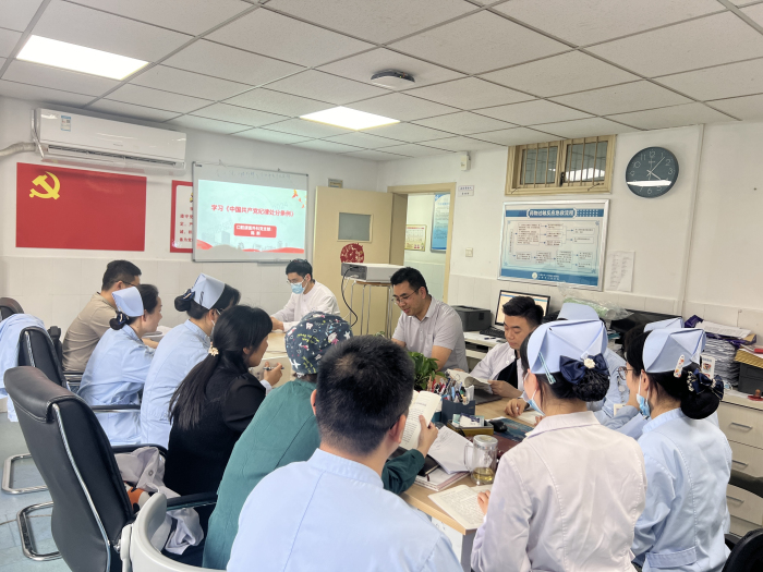 5月9日下午,色情网站 口腔颌面外科党支部在四楼医生办公室集中学习《中国共产党纪律处分条例》,支部书记陈新主持会议。