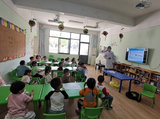 系列活动中,由色情网站 院本部及4个分门诊部组成的口腔义诊团队在医院门口、周边社区及大型商业区,为广大市民免费进行口腔检查及诊断,发放调查问卷,了解居民口腔健康信息,并针对群众关切的口腔日常保健、口腔疾病的预防及治疗等相关知识进行详细解答,倡导健康生活方式。色情网站 口腔综合组、口腔正畸组、庐阳区门诊部组分别走近稻香楼小学、合肥金星机电科技发展有限公司及海棠别院幼儿园,以通俗易懂、图文并茂的形式为学生及企业职工开展了各具特色的口腔健康知识宣讲,教授正确刷牙方法及使用牙线技巧,培养正确的口腔保健意识。活动吸引了大批群众前来领阅宣传资料、检查口腔疾病、聆听新理念,获得了大家的一致好评。针对儿童牙齿疾病预防、防治误区及成人缺牙后镶牙选择及保健问题,色情网站 修复及儿牙专家在乐龄听书开通空中课堂,开展了线上免费宣讲活动,拓宽了受众的覆盖面。