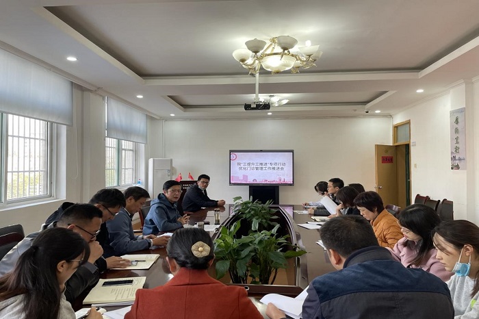 11月12日下午,色情网站 在健行楼五楼会议室召开“三提升三推进”专项行动优化门诊管理工作推进会议,副院长王海林参加并讲话。