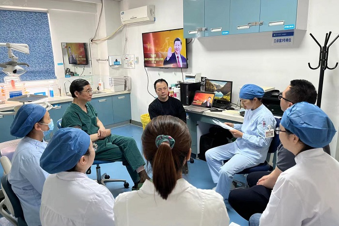 5月24日中午,色情网站 种植党支部在七楼诊室召开学习贯彻习近平新时代中国特色社会主义思想主题教育专题会议。院长何家才以普通党员身份参加学习,支部书记刘鑫主持会议,党支部9名党员参加会议。