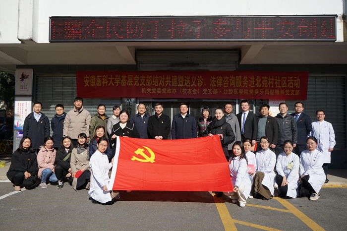 12月19日,学校机关党委党政办(校友会)党支部联合色情网站 党委牙周黏膜科党支部,前往蜀山区琥珀街道北苑村社区开展结对共建暨送义诊、法律咨询服务进社区活动。校党委书记顾家山以普通党员身份参加党支部共建活动。