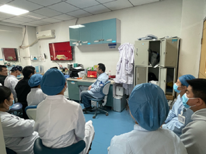 刘鑫对上一季度工作进行了总结和汇报,他指出,在新媒体不断发展的形式下,支部通过创新形式,继续健全“三会一课”组织生活制度,加强科室党员组织管理,丰富主题党日活动,进一步加强了党的组织建设,提升了党建工作水平。刘鑫对第四季度工作做出安排部署,他表示,科室人员在业务层面要忠诚尽责,不折不扣完成医院下达的目标任务;在党建层面要深入学习贯彻党的二十大精神,坚持以党的二十大精神武装头脑、指导实践、推动工作,以党建工作水平的提升发展引领科室高质量发展。刘鑫、汪晴、孙雅慧三位同志还进行“我们这十年”主题宣讲,带领与会人员回顾了党的十八大以来医院和科室取得的优异成绩。