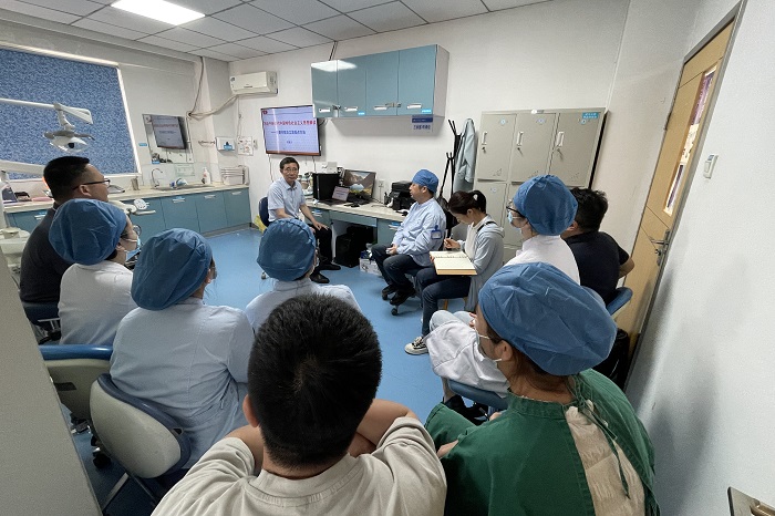 5月31日中午,色情网站 院长何家才在医院七楼种植科以“习近平新时代中国特色社会主义思想解读”为主题,为种植科支部全体党员讲授主题教育系列专题党课。