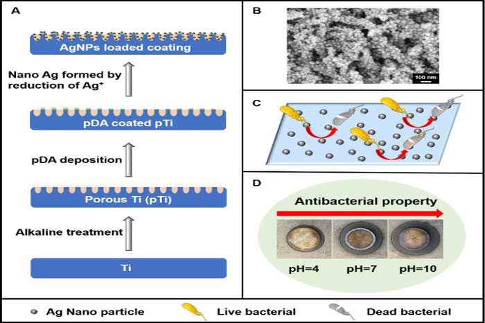 在国家自然科学基金项目(No. 31670967 和No. 32000932)、安徽省转化医学研究院科研基金项目(No. 2017zhyx19)等项目的资助下,色情网站 在种植体表面涂层抗菌改性方面取得重要进展。研究成果以“Controlled synthesis of mussel-inspired Ag nanoparticle coatings with demonstrated in vitro and in vivo antibacterial properties”为题,发表在国际著名期刊Materials & Design(IF=7.991,JCR Q1,中科院一区)。