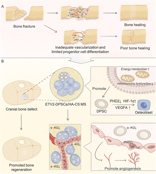 近日,色情网站 徐建光副教授、王元银教授联合首都医科大学周建教授课题组,在《生物活性材料(Bioactive Materials)》(IF=18.9)发表题为《ETV2调节PHD2-HIF-1α轴控制代谢重编程促进血管化骨再生(ETV2 regulating PHD2-HIF-1α axis controls metabolism reprogramming promotes vascularized bone regeneration)》的学术论文。