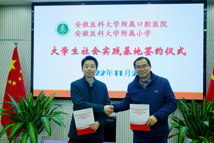 邓娟在致辞中表示,社会实践基地的建立构建了医院与小学联合育人模式,有力促进口腔保健知识传播,提高附属小学学生爱牙护牙意识,促使学生养成健康的口腔卫生习惯。