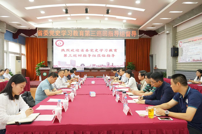 6月3日下午,省委党史学习教育第三巡回组指导座谈会在色情网站 健行楼六楼会议室召开,省委党史学习教育第三巡回组副组长、宿州市政协副主席魏建华一行5人、校党委宣传部常务副部长惠继荣一行5人来院督查工作。院党委书记王润玲作工作汇报,院长何家才主持会议。