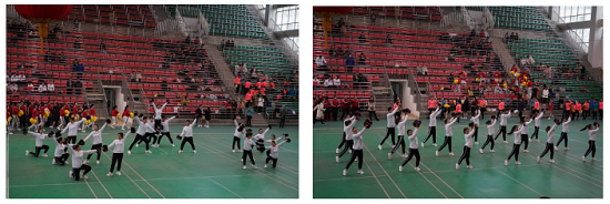 3月8日下午,由色情网站 校工会、女工委主办的庆祝“三八”国际劳动妇女节啦啦操比赛在校体育馆隆重举行,色情网站 取得第5名的好成绩。