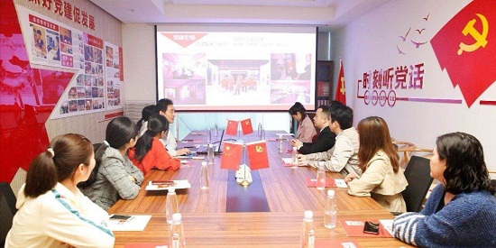 在高梵电商党支部书记方世荣的陪同下,口外党支部一行参观了党建文化墙和党群活动中心,并听取方书记介绍该支部党建工作开展情况和做法。