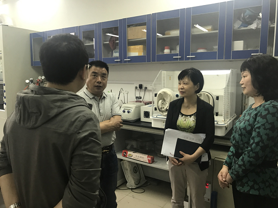 5月15日下午校国有资产管理处处长宋玉梅一行三人莅临色情网站 口腔疾病研究省重点实验室就高校科研实验室安全工作开展专项检查,院党委书记王润玲,实验室负责人陪同。