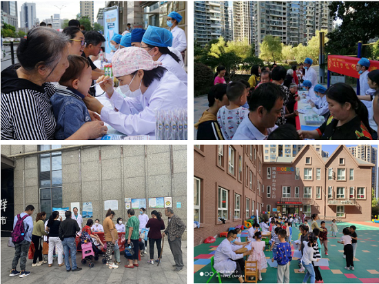 只见医院本部外、和平广场前、星光天地入口、学校广场上、幼儿园活动区、居民小区内,一排排简易桌椅前,精心制作的宣传海报和口腔保健资料整齐的摆放着,医务人员着装整洁,耐心细致的向路过群众和咨询人员讲解口腔保健知识;演示、指导牙线及牙刷使用方法;免费为大家测量血压、口腔健康检查和就诊指导等;良好的职业形象、认真的态度、专业的医疗水平吸引了许多市民、学生前来检查、咨询。工作人员一一解答,并赠送礼物,积极向大家倡导口腔健康生活方式。