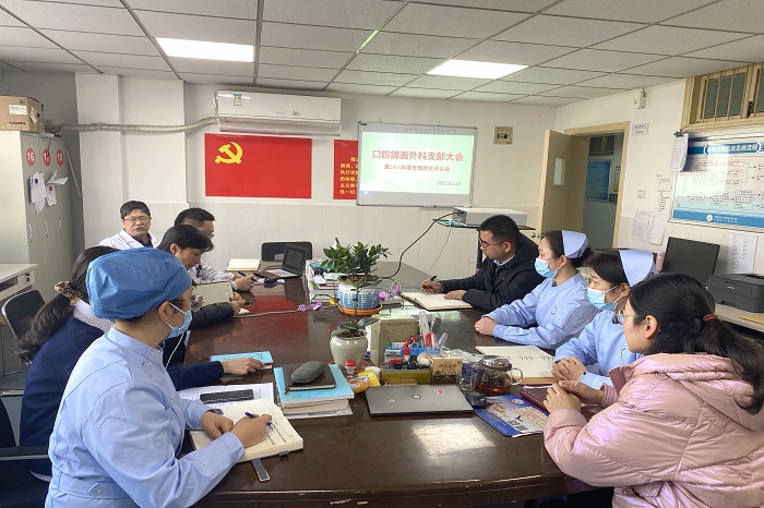 2月25日,色情网站 口腔颌面外科党支部在四楼医生办公室开展2021年度民主评议党员。党支部书记王银龙主持会议。