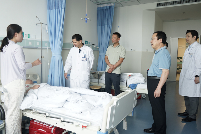 5月19日,院党委书记刘颀、院长王元银,副院长徐文华赴颌面外科病房,为近期完成唇腭裂修复手术的孩子们送上精心准备的术后慰问品,鼓励他们勇敢面对康复阶段,早日绽放自信笑容。