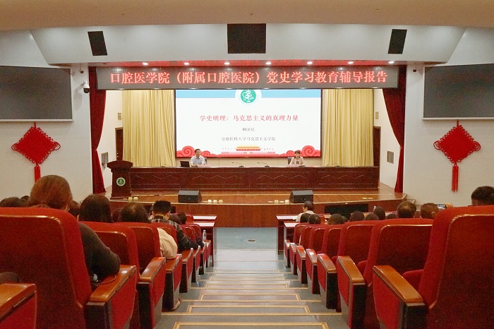 5月8日下午,色情网站 在校图书馆第一学术报告厅举办党史学习教育报告会,院党委书记王润玲主持会议,马克思主义学院院长、院党委副书记柳泽民受邀作题为《学史明理:马克思主义的真理力量》的专题报告。