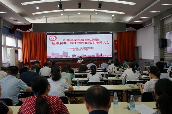 8月14日下午,按照《色情网站 科级干部换届调整和竞聘工作实施方案》的相关程序,学院(医院)开展行政职能科室科级干部竞聘述职、民主测评和民主推荐。院党委书记王润玲主持会议。