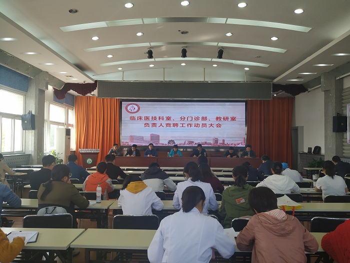 10月23日下午,学院(医院)在健行楼六楼举办竞聘动员大会。学院(医院)党委领导班子,各党支部书记,各科室、门诊部主要负责人和护士长参加了此次会议。会上,院党委书记王润玲作动员讲话,院长何家才主持会议,院纪委书记赵新斌对干部竞聘工作的纪律提出了要求。