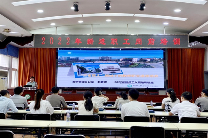 近日,色情网站 2022年新进职工岗前培训开班典礼在健行楼六楼会议室举行。院党委书记王润玲、院长何家才等院领导出席开班典礼,院党委副书记陈然主持。