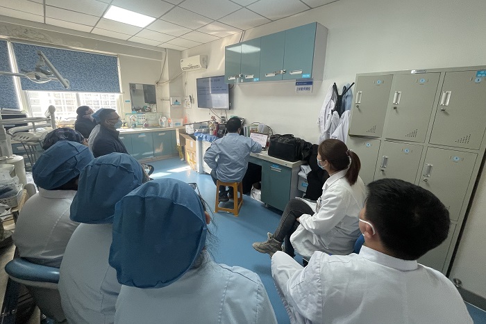 国家医保局于近期公布了《关于规范完善口腔种植医疗服务项目及价格的通知》。2月4日中午,色情网站 种植科副主任刘鑫带领科室全体医生认真学习了种植集采政策价格调整后的具体实施细则,加强医护人员对调整后的口腔种植医疗服务价格项目的了解。