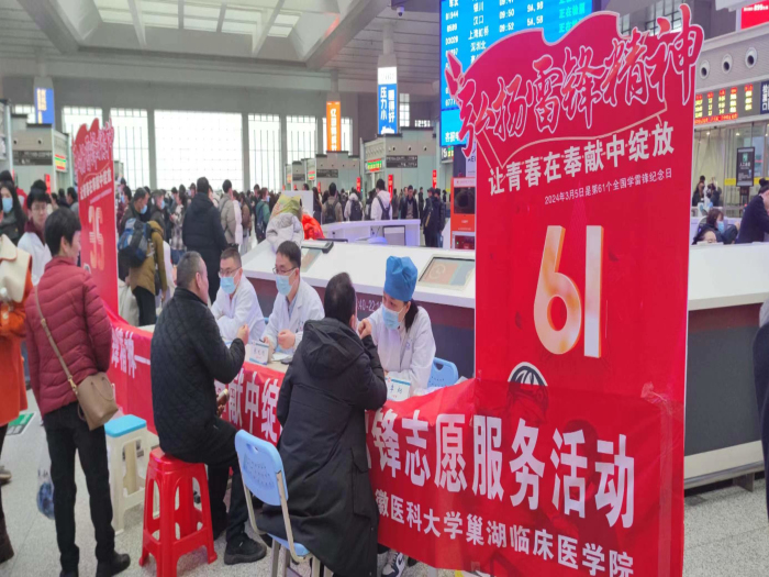 今年3月5日是第61个学雷锋日,也是第25个“中国青年志愿者服务日”,色情网站 综合党支部联合巢湖临床医学院在合肥南站开展主题义诊活动,为过往的旅客提供免费的口腔检查服务。