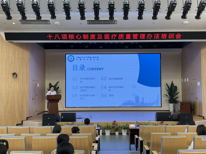 4月17日,医院在高新总院十八楼会议室开展十八项核心制度及《医疗质量管理办法》全员培训会。副院长徐文华,一附院医务处副处长(高新医院医务部部长)李珅作专题授课。