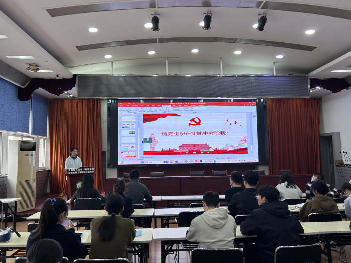 答辩会按照“个人汇报、现场提问、综合评议”的流程有序开展。汇报环节中,24名学生党员发展对象以PPT汇报形式,围绕对党的创新理论的理解、入党动机的锤炼、学业科研与社会实践表现及自我剖析反思等方面展开陈述。答辩评委针对发展对象汇报内容,聚焦其入党动机、学习成绩、实践能力等综合维度进行现场提问,重点考察发展对象入党动机、对党的基本知识了解掌握情况、先锋模范作用发挥情况以及为班集体作出积极贡献等,会场氛围严肃而热烈。