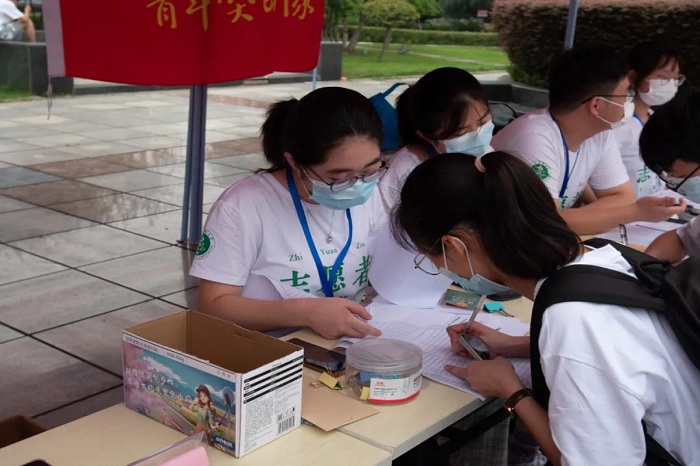 “学弟,这是你的校园卡和新生礼包,校园卡时出入校园和吃饭洗澡必备的,可不要弄丢了哦。”“学妹,别着急,我们会领你去宿舍,帮你把行李搬上楼。”“学长学姐,请问电费应该怎么缴呀?“”刚刚有人要来我们宿舍办宽带,学长学姐,请问这个能相信吗?“……也许初遇时只是萍水相逢间的浅谈,但无形之中学长学姐们已默默为你们擎起了未来生活的引航灯。无数次的消息通知,上百份材料的收集整理,九十多份新生礼包的归类装袋,近一个月的准备与筹划……午夜的星辰照耀着学长学姐忙碌的身影,卯时的微风拂去学长学姐们的倦意,日中的骄阳见证学长学姐们的汗水,曾经的我们浅谈只谓萍水相逢,今天的我们交流只为倾囊相助。