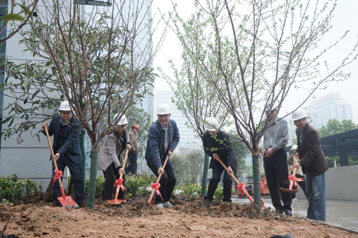 实地查看新院区建设情况后,余永强代表校党委、行政,向建设工作人员及一线工程建设者致以亲切的慰问,对他们的辛苦付出表示感谢,对项目进展给予了高度肯定。绵绵春雨中,他和色情网站 新院区建设指挥部成员一起,共同种下了桂树、桃树、琵琶等树苗,并希望色情网站 新院区像树苗一样茁壮成长,全院职工要从工作中汲取营养,向下扎根、向上生长,向阳而生,撑起一片绿荫,守正创新,勇毅前行,共同为新院区高质量发展描绘美丽画卷。