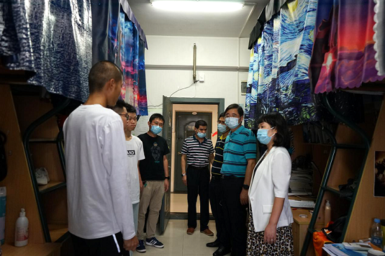 全院齐心,全面做好返校后各项工作。8月3日,院领导班子走访学生宿舍并与返校学生进行了亲切交流。走访过程中,院领导询问了同学们在疫情防控期间居家情况和返校后的心理、生活状况,提醒同学们按时测量体温、多开窗通风、勤晒被褥,同时勉励大家积极调整好心态,尽快进入学校学习状态。院辅导员围绕疫情防控、返校后学习科研安排、实习生实习等问题与学生进行了交流,并分批次为学生进行培训,带领学生学习了我校学生行为准则,要求学生干部按照返校方案落实好各环节工作,按时上报身体健康情况,坚持做好疫情防控日志,做到台账清晰、动态准确;落实落细晨午晚检制度,利用新媒体等手段进行晚点名。