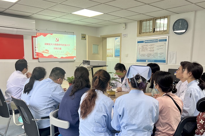 5月29日中午,色情网站 副院长徐文华在病房四楼医生办公室以“凝聚起大兴调查研究的强大共识和力量”为题,为颌面外科支部全体成员讲授主题教育系列专题党课。