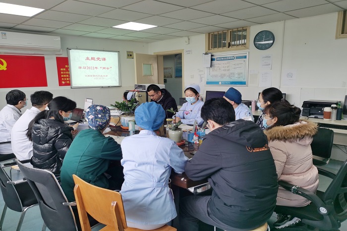 3月23日,色情网站 颌面外科党支部在四楼医生办公室集中学习习近平总书记在2022年全国两会上的重要讲话精神,支部书记王银龙主持会议。