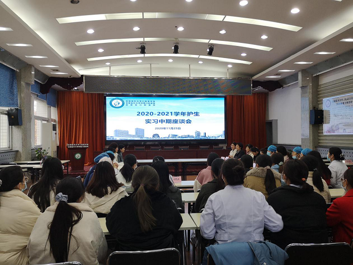 11月25日下午,色情网站 护理部在健行楼六楼会议室开展2020-2021学年护生实习中期座谈会。安徽医学高等专科学校教务处主任吴晓红、该校系部老师,色情网站 护理部副主任余红、科室护士长、临床带教老师及护生参加了本次会议。