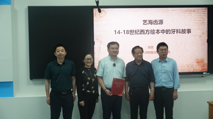 讲座结束后,双方围绕如何上好口腔医学人文实践课展开交流和讨论,院领导为周建教授颁发感谢信。