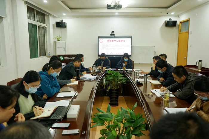 10月26日下午,色情网站 党委理论学习中心组召开会议,专题学习领会党的二十大精神和习近平总书记重要讲话精神。院党委书记王润玲主持,院长何家才及其他院领导参加会议。