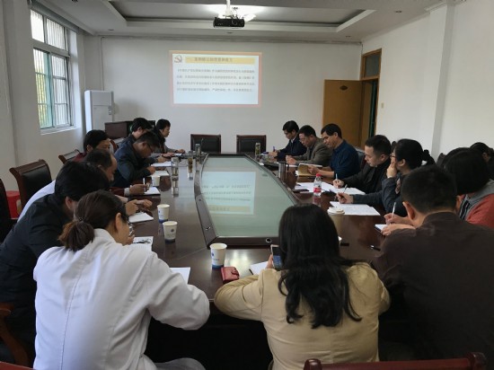 院教学管理办公室赵春晖主任带领党员干部学习习近平总书记在全国教育大会上的讲话,并从牢固树立教学中心地位、修订人才培养方案、多举措推进创新创业教育三个方面进行中心发言。党政办张黎主任讲解七五普法相关内容,副主任刘伟带领党员干部学习《贯彻〈关于加强公立医院党的建设工作的意见〉实施办法》。