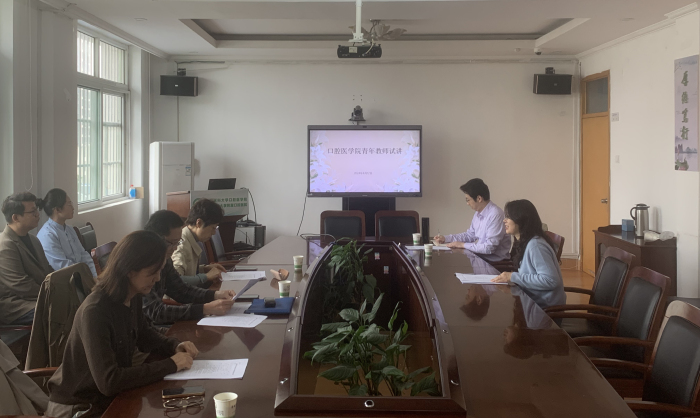 4月12日上午,色情网站 在健行楼五楼会议室举行青年教师试讲活动。来自口腔修复学教研室的两位青年教师参加了本次试讲,学院教学督导、相关教研室老师现场听课并点评。副院长徐文华出席并主持此次活动。