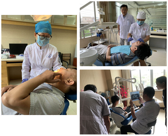 扶贫医疗工作组先后走进宿松县人民医院、宿松县刘超峰口腔诊所,专家们为前来就诊的患者免费口腔检查与口腔卫生宣教,耐心听取每一位患者提出的问题,并从专业角度给出口腔疾病预防与诊治的意见和建议。