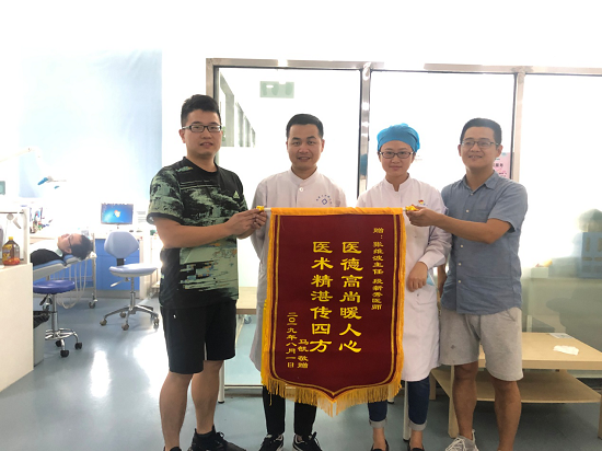 半年前,肥西县居民马凯的妈妈,因为口腔反复起溃疡、牙龈出血、咬合无力来安徽省口腔医院庐阳区门诊部就诊,被诊断为慢性牙周病。经过系统的牙周序列治疗和种植治疗,修复了缺失的牙齿。目前,患者口腔问题已明显好转。为表示感谢,患者特意让其儿子赠送一面写有“医德高尚暖人心,医术精湛传四方”的锦旗。