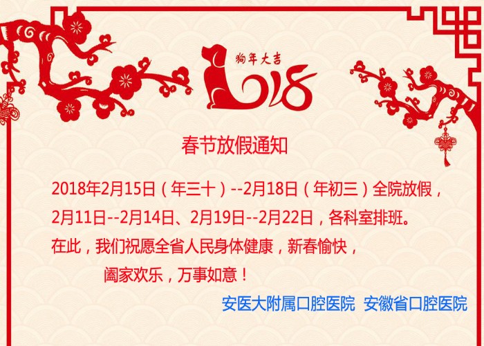 2018年春节放假工作安排